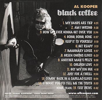 In 2005, Steve Vai's Favorite Nations label released Al's first solo album since 1975's ACT LIKE NOTHING'S WRONG. Dubbed "Black Coffee," It was filled with new Kooper songs and bizarre arrangements of cover tunes. Critically acclaimed as no other Kooper solo album, it garnered the Memphis Blues Award for Comeback Album Of The Year.