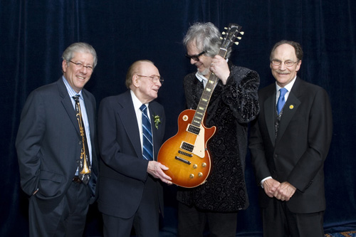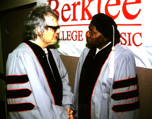 Al continued his influential forays into his fifth decade in the music business. He scores the occasional film and works almost daily in his home studio. He relocated to Boston in the fall of '97 to teach at the Berklee School Of Music. Concurrently, Five Towns College in Long Island bestowed an honorary Doctorate of Music on Kooper in May of '97, to start him off at Berklee as Dr. Kooper. In the fall of 2001, Berklee bestowed their own doctorate on Kooper, in a ceremony also honoring jazz great Elvin Jones (pictured).